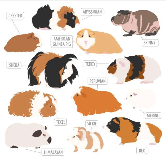 Did you know, Guinea Pigs are not really pigs and they did not come from Guinea – they come from Andes Mountains. There are many coats and colours amongst guinea pigs and at Pets Everywhere we often have Abyssinian, Crested, Himalayan, and American (Short Haired) Guinea Pigs instore.
